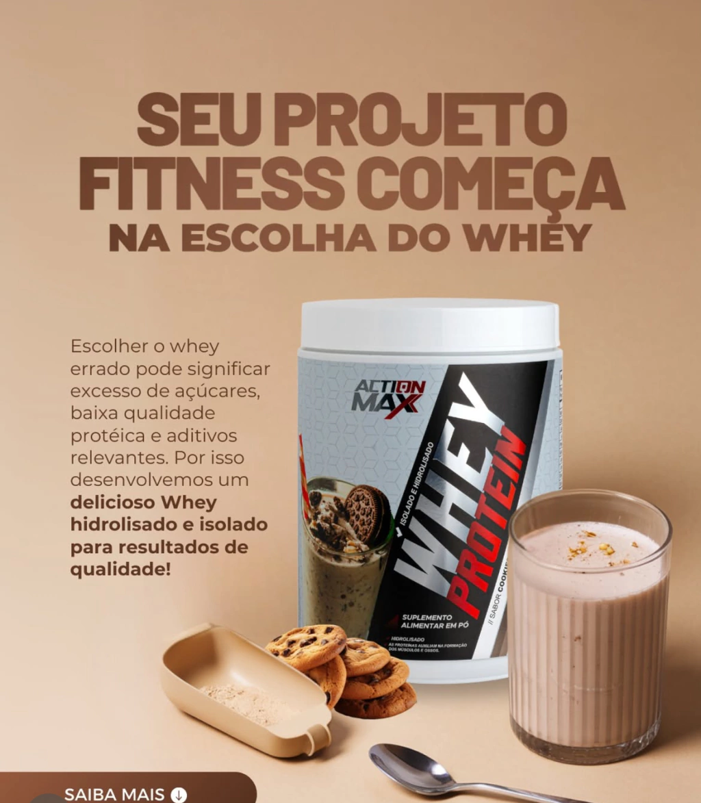 Adicione o Whey Ultra Concentrado Hidrolisado e Isolado Action Max à sua rotina e potencialize seus resultados na academia! 🛒✨
